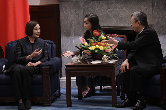 In remarks, Vice President Chen stated that he was delighted to meet with his visitors, and also expressed gratitude for the many valuable suggestions that Chair Swaffer and her husband gave during several previous visits to Taiwan. The vice president then took the opportunity to thank her for voicing support for Taiwan for many years in important international venues like the World Health Organization and Alzheimer's Disease International (ADI). He went on to say that her voice has made the international community aware of Taiwan's efforts to address dementia, making her an extremely valuable ally.
