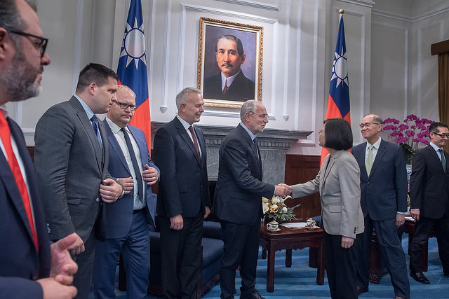 The president said that the visiting delegation includes members from Slovenia, Croatia, Estonia, the Czech Republic, and Portugal, whose countries all have an important common denominator with Taiwan. Over the past 30 to 40 years, we have all experienced great hardships, and fought for democratic achievements that we can be proud of today. So we all understand that the spirit of democracy and the right to live in peace are precious. She then expressed hope for closer dialogue and cooperation with the European Union (EU) and all its member nations. This is particularly true for EU members that have historical experiences similar to Taiwan, and have undergone remarkable democratic transformations.
