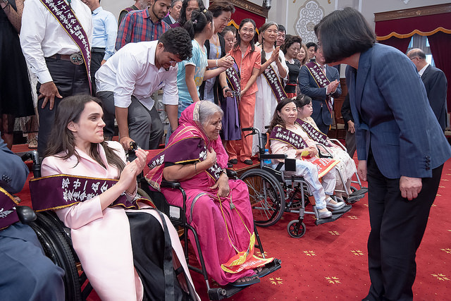 President Tsai further noted that Ms. Alexandra Kutas is a professional model from Ukraine, and has been in a wheelchair since birth, but always had her mind set on becoming a model. Through hundreds of auditions, Alexandra never gave up, and finally became the first model with disability in Ukraine. In doing so, she not only challenged the status quo, but also helped the world see what beauty truly means.