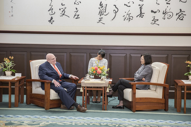 In remarks, President Tsai welcomed Ambassador Richard Armitage, Chairman of the board at the Project 2049 Institute, leading another delegation to Taiwan. Last month, she just met with Admiral Scott H. Swift, former Commander of the US Pacific Fleet, in Taiwan, so she was pleased to welcome good friends from the Project 2049 Institute and have more interaction and exchanges with them.
