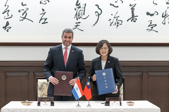 Noting that the "Agreement on Economic Cooperation between the Republic of China (Taiwan) and the Republic of Paraguay" took effect this past February, President Tsai stated that President Abdo will personally preside over a Paraguay investment roadshow during this trip to spur increased interaction and exchanges between the two countries' business communities. President Tsai said she hopes that President Abdo and his delegation members will take advantage of this visit to update themselves on the current state of Taiwan's economic and trade activities, and experience the warmth and hospitality of the Taiwanese people.