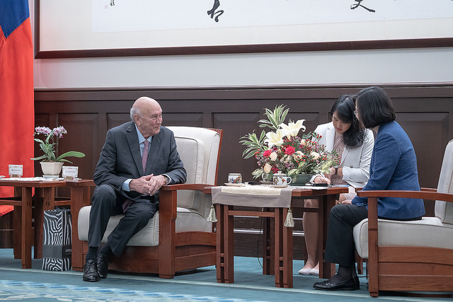 The president believes that Taiwan and South Africa share common values in promoting transitional justice, democracy, and peace. She thanked Mr. de Klerk for his long-standing support for Taiwan, and for publicly calling for a peaceful resolution of the dispute across the Taiwan Strait through dialogue that does not violate the universal values of democracy and human rights.