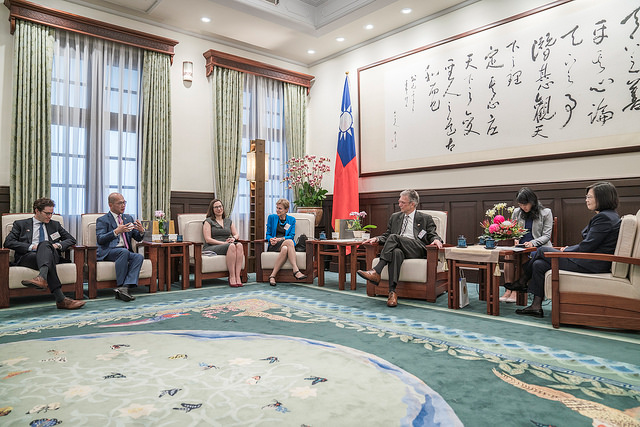 The president noted that just last month, a bipartisan group of four senators introduced the Taiwan Allies International Protection and Enhancement Initiative (TAIPEI) Act of 2018, with strong bipartisan support for bolder moves by the executive branch to help Taiwan secure its diplomatic relations.