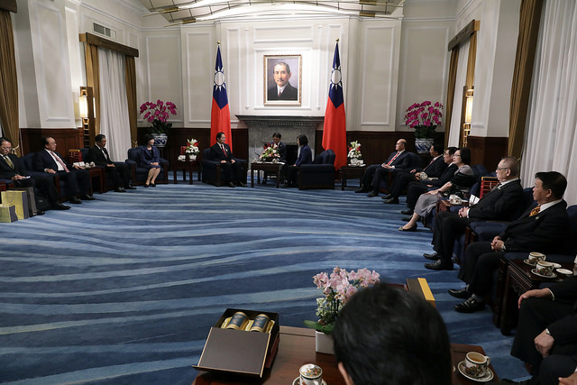 President Tsai stated that in responding to today's rapidly changing international political and economic situation, Taiwan and Japan are allies on the front lines of the fight to defend democratic values, freedom, and human rights. In the face of pressure from China, she said, Taiwan will neither act rashly to escalate confrontation, nor will we give in. To play a stabilizing role in times of change is no easy task, but this, she said, is the responsibility of a national leader.