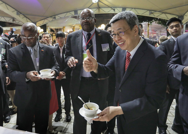Students from the College of Performing Arts at the National Taiwan University of Arts provided music and dance performances at this year's reception. President Tsai, Vice President Chen, Mrs. Chen, President Abdo, and Mrs. Abdo also took a pleasant stroll to a pond-side stage to watch the performances as hosts and guests mingled and enjoyed the lively atmosphere.