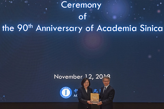 On the afternoon of November 12, President Tsai Ing-wen attended the International Scientific Leaders' Forum, marking Academia Sinica's 90th Anniversary. She said she looks forward to Taiwan working together with preeminent scientists and experts from around the world to forge deeper ties of knowledge, start more joint programs of research, advance scientific development, and benefit all our societies.