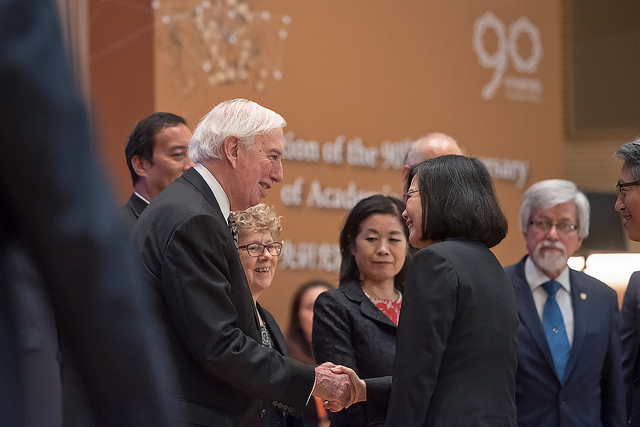 To begin, I would like to thank President Liao (James C. Liao/廖俊智, current Academia Sinica President), President Lee (Lee Yuan-tseh/李遠哲, Academia Sinica President 1994-2006), and President Wong (Wong Chi-huey/翁啟惠, Academia Sinica President 2006-2016), and everyone from Academia Sinica for your hard work. I would also like to thank our friends from the diplomatic community, and everyone who traveled all the way to Taiwan to join us for this celebration.