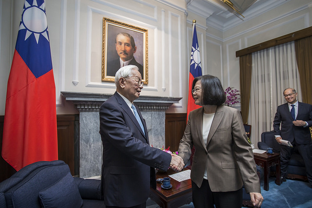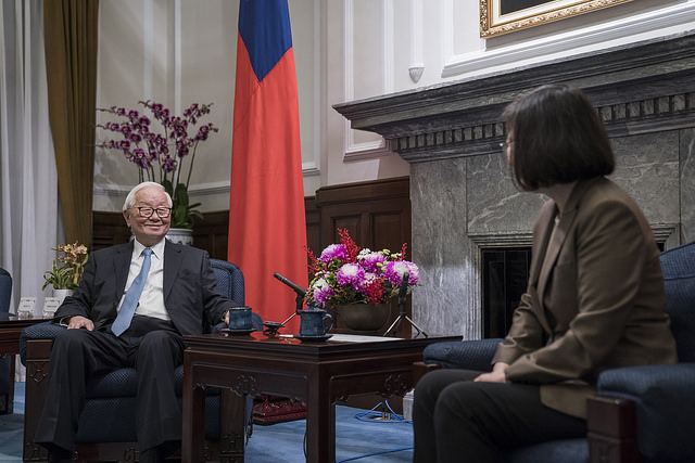 President Tsai and Mr. Chang then exchanged ideas about preparations for, and issues to be discussed at, this APEC Economic Leaders' Meeting (AELM). The president said that Mr. Chang will not simply express her opinions at APEC meetings, but will also draw on his own experience and wisdom to make suggestions to the president, and that together, they worked out Taiwan's final positions for this year's AELM.