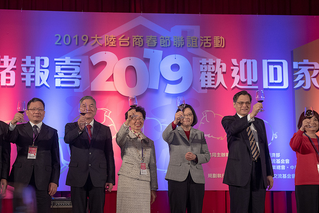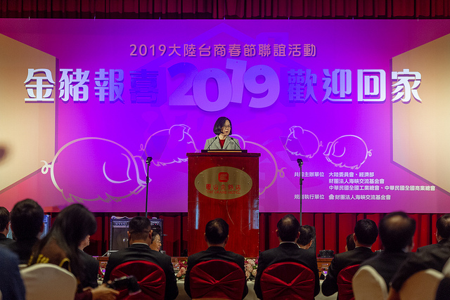 While attending the 2019 Lunar New Year reception for China-based Taiwanese firms on the morning of February 11, President Tsai Ing-wen stated that the government is adapting to changes in global economic and trade conditions by actively expanding domestic demand, providing full assistance to Taiwanese firms based in mainland China looking to come back and invest in Taiwan, and working to vigorously market Taiwan and help Taiwanese companies to build up a stronger presence worldwide. Commenting on cross-strait relations, the president emphasized that as a responsible member of the international community, Taiwan is committed to maintaining peace and stability in the Taiwan Strait, and she called on all participants in the region to do their part to safeguard regional peace and stability.