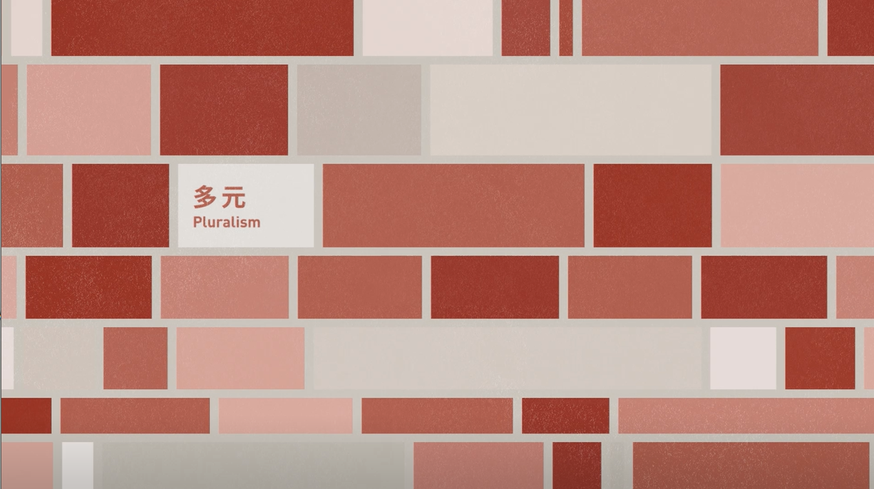 The animation begins with a brick wall symbolizing solidarity and cooperation, embodying the history and diversity that have accumulated at the Presidential Office Building over the past century. The middle of the animation depicts this diverse culture's transformation into energy, breaking through the bounds of the brick wall toward progress. Thus, this building, which carries with it the hopes and dreams of a nation, is able to house greater potential for unfettered imagination. Finally, the animation concludes by gathering this imagination and energy together and pushing toward a more open future.
