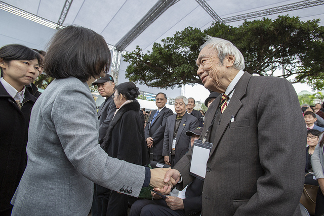 After concluding her speech, President Tsai personally awarded "certificates of restored reputation" to the family members of 228 victims Wang Fu (王富), Hsu Chin-shui (許金水), Chang Mu-huo (張木火), and Tseng Lin-tu (曾琳土). Also present at the ceremonies were Premier Su Tseng-chang (蘇貞昌), Taipei Mayor Ko Wen-je (柯文哲), Senior Advisor to the President Yao Chia-wen (姚嘉文), Minister of the Interior Hsu Kuo-yung (徐國勇), Minister of Culture Cheng Li-chiun (鄭麗君), Transitional Justice Commission Acting Chairwoman Yang Tsui (楊翠), Chairman Hsueh Hua-yuan (薛化元) of the 228 Memorial Foundation, Legislator Yu Mei-nu (尤美女), as well as the family members of 228 victims.