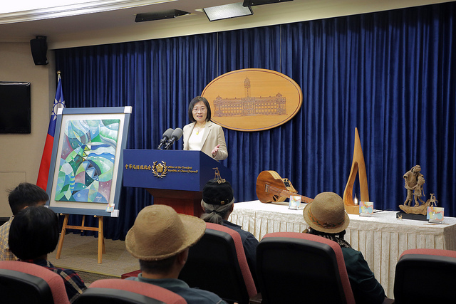 President Tsai Ing-wen will lead a delegation themed "Oceans of Democracy" on state visits to Palau, Nauru, and the Marshall Islands, three of Taiwan's allies in the Pacific, from March 21 to 28. On this trip, the president will present distinctively Taiwanese gifts to the respective heads of state and others. On the morning of March 19, the Office of the President convened a press conference to showcase those gifts, and Department of Public Affairs Director-General Chang Wen-lan (張文蘭) described their special features and significance.
