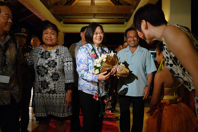 Accompanied by Vice President Oilouch, President Tsai made her way down the red carpet and received a police force honor guard salute. Vice President Oilouch then introduced President Tsai to Palauan officials before accompanying her to a limousine. The president waved to a welcoming crowd of expatriates and Palauan students before boarding the limousine.