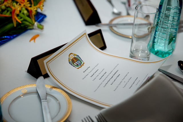 President Tsai arrived to find President Waqa and his wife waiting to welcome her at the banquet entrance, and they posed together for a photo before a vegetable map of Taiwan and Nauru. The state banquet then began with a clergy-led prayer, followed by the playing of both countries' national anthems.