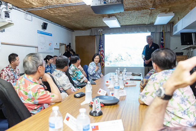 President Tsai then toured HI-EMA accompanied by Hawaii Adjutant General Major General Arthur J. Logan, where she learned about the emergency response center's core mission and operating conditions.