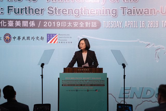 President Tsai Ing-wen attended the opening ceremony of the 2019 Indo-Pacific Dialogue on the morning of April 16. She emphasized that as a full partner in the United States' Free and Open Indo-Pacific Strategy, Taiwan is also ready, willing and able to do more in the Indo-Pacific and beyond. The president also expressed hope for working together with the United States to forge a new era in the Taiwan-US partnership.