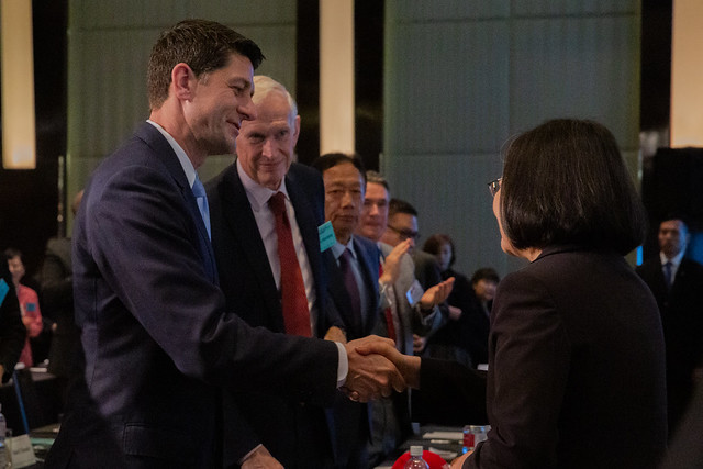 I also want to offer a special welcome to the head of the US Congress delegation, Speaker Ryan, and Congressmen Hank Johnson, Don Bacon, and Salud Carbajal. Your visit testifies to the strong friendship shared by Taiwan, and the members of Congress.