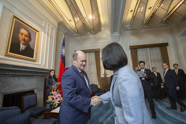 In his remarks that followed, Senator Coons thanked President Tsai for taking the time to meet with them. He stated that his delegation was completing a very busy round of international visits. They had visited Tokyo, Seoul, and Beijing, and Taipei was their final stop.