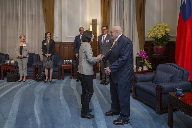 In remarks, President Tsai began by welcoming her visitors to Taiwan. Ambassador Richard Armitage, former US Deputy Secretary of State, is an old friend of Taiwan, she said, and he led a delegation from the Project 2049 Institute to the Presidential Office last year as well. The president said that she was happy to see him again and to have the opportunity to interact with the experts and scholars present at the meeting.