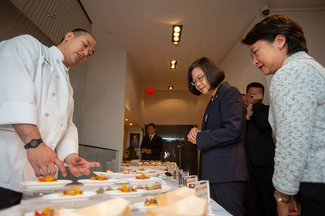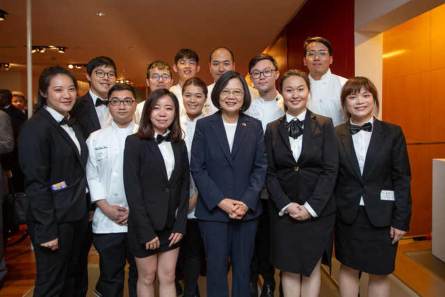 The delicious foods at the reception were prepared and served by Taiwanese students enrolled in The Culinary Institute of America and New York University, and President Tsai chatted with them during the reception. She complimented them for the dedication and courage they showed by pursuing their education in far-off New York, and wished them success in their studies.