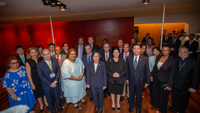 In her remarks at the reception, President Tsai thanked our allies' permanent representatives to the United Nations for attending, and thanked everyone for enthusiastically welcoming her to New York. Although she had met them many times in Taiwan, she was quite pleased to meet friends old and new during this trip. President Tsai also said that this trip includes Haiti, St. Christopher and Nevis, St. Vincent and the Grenadines, and St. Lucia.