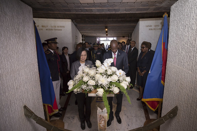 President Moïse then welcomed President Tsai and the delegation on behalf of the government and people of Haiti. President Tsai responded by expressing her gratitude to President Moïse for welcoming the delegation with such a grand ceremony. She went on to say that Haiti has been our friendly ally for many years, and that she was delighted to be there. The delegation then proceeded to the Haitian National Pantheon Museum (Musée du Panthéon National Haitien, MUPANAH).