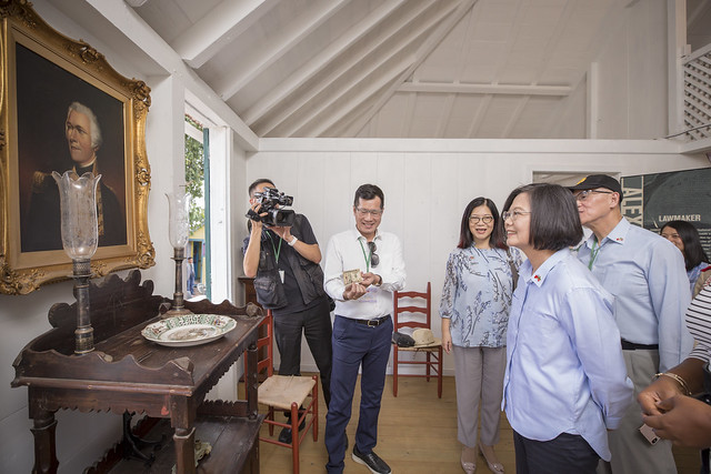 On the afternoon of July 14 local time (early morning of July 15 Taipei time), President Tsai Ing-wen and her delegation, who are currently in St. Christopher and Nevis on her Journey of Freedom, Democracy, and Sustainability, visited the Museum of Nevis History and Alexander Hamilton's birthplace.