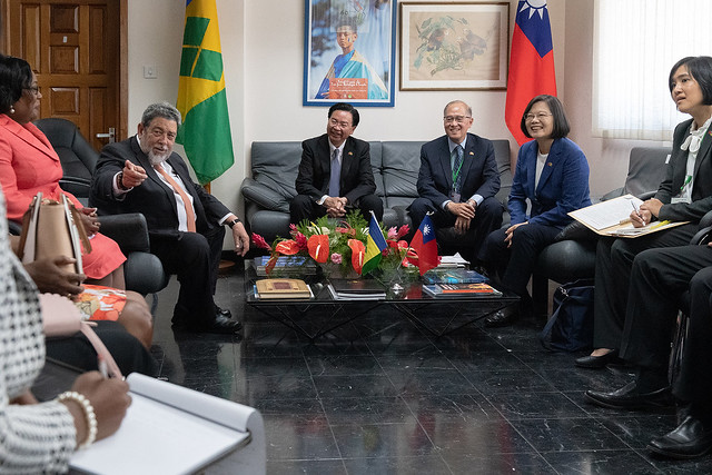 After a short break, President Tsai's motorcade headed to the Office of the Prime Minister, where she met with Prime Minister Gonsalves to exchange views on mutual concerns. Subsequently, both of them acted as witnesses as Taiwan's Foreign Minister Joseph Wu (吳釗燮) and SVG Deputy Prime Minister and Minister of Foreign Affairs, Trade & Commerce Louis Straker signed the two agreements: Agreement on Public Finance Cooperation between the Government of the Republic of China (Taiwan) and the Government of Saint Vincent and the Grenadines; Agreement between the Government of the Republic of China (Taiwan) and the Government of Saint Vincent and the Grenadine on Combating Transnational Crimes. Through exchange and sharing of experience, Taiwan and SVG hope to strengthen bilateral cooperation in financial management, and enhance information exchange in combating transnational crime, working together to promote cooperation and exchanges covering judiciary and policing.