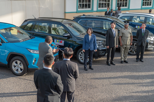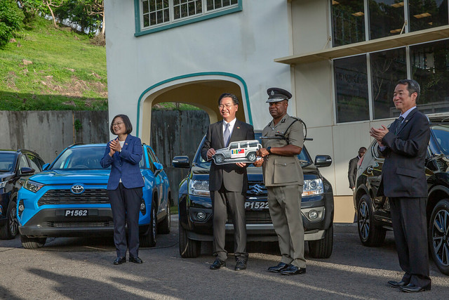 President Tsai then attended a police vehicle donation ceremony. Police vehicles take a severe beating on the rugged SVG terrain, so Taiwan agreed to donate two police motorcycles and eight patrol cars to SVG. President Tsai took advantage of her visit to SVG to witness the ceremony where Taiwan's Minister of Foreign Affairs Joseph Wu (吳釗燮) presented prototype versions of the vehicles to SVG Commissioner of Police Colin John. The donation highlights the fact that Taiwan supports the efforts of the SVG government to upgrade police equipment, and improve its law enforcement capabilities, thereby improving public safety.