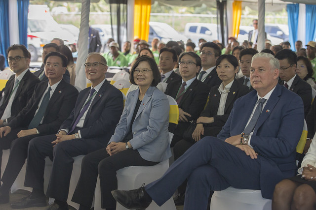 After arriving at the export collection center, President Tsai first received a briefing from the head of the Taiwan Technical Mission in St. Lucia, Mr. Cheng Shih-lung (鄭仕隆), on the results of the Taiwan ICDF Banana Productivity Improvement Project in St. Lucia. Minister for Agriculture Ezechiel Joseph then delivered remarks in which he thanked the Taiwan government and technical mission for introducing new technologies to complement traditional domestic banana cultivation techniques and improve St. Lucia's agriculture.