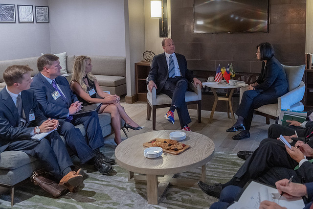 Deputy Secretary-General Tsai stated that immediately upon her arrival in Denver, the president held closed-door bilateral talks with Senator Gardner. The two first discussed the issue of security in the Taiwan Strait. The president thanked the US Congress for supporting the sale of arms to Taiwan, including the recently announced sale of M1A2 Abrams main battle tanks. Senator Gardner stated that the US Congress will continue to pay close attention to the security situation in the Taiwan Strait, and will continue to support arms sales to Taiwan to help Taiwan strengthen its self-defense capabilities. At the same time, Senator Gardner stated that his friends in the US Congress also support Taiwan's democracy and national defense.