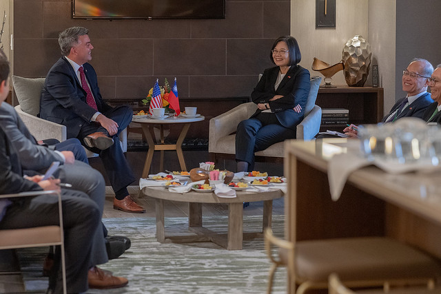 President Tsai Ing-wen, currently transiting in the United States on the return leg of her Journey of Freedom, Democracy, and Sustainability, arrived at her hotel in Denver on the evening of July 19 local time (morning of July 20 Taipei time). There she met separately with US Senator Cory Gardner and Colorado Governor Jared Polis. After the meetings, Taiwan's National Security Council Deputy Secretary-General Tsai Ming-yen (蔡明彥) briefed the press on the substance of the two meetings.