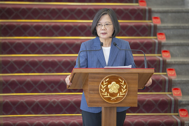 Around noon on August 1, President Tsai Ing-wen delivered remarks in the Entrance Hall of the Presidential Office Building regarding China's decision to bar its citizens from independent travel in Taiwan, and its recent military exercises.