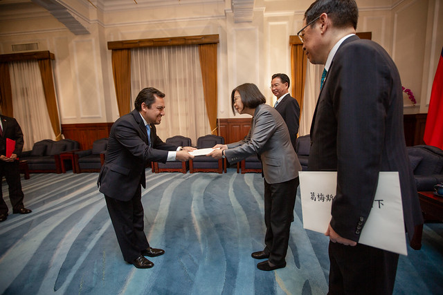 In remarks, the president said she was very happy to receive the credentials of Ambassador Gómez at the Presidential Office. On behalf of the government and people of the Republic of China, the president extended a sincere welcome to the new ambassador.