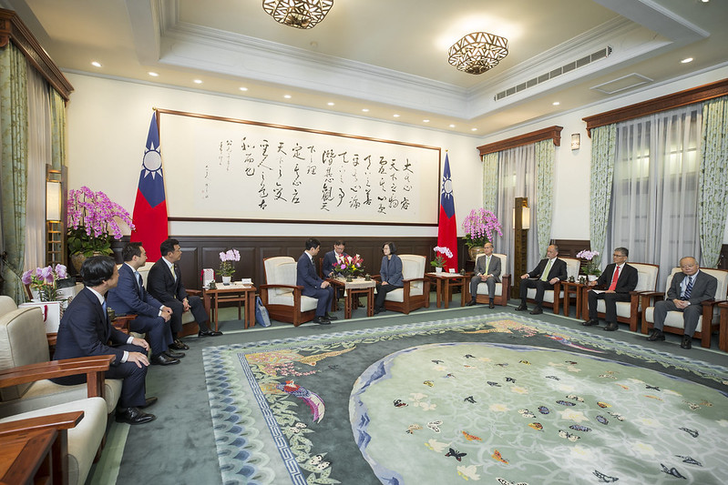 I want to welcome our guests to the Presidential Office for in-depth exchanges. All of our visitors today are members of Japan's House of Representatives from the Osaka area, one of the favorite destinations in Japan for tourists from Taiwan. Last year, Japan took in a total of 4.83 million tourist arrivals from Taiwan, which was an all-time high.
