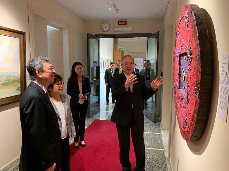 Vice President and Mrs. Chen and their delegation headed over to the ROC Embassy to the Holy See, where Ambassador Lee briefed them about their itinerary. They then toured an exhibition titled, "The Light of the World—Contemporary Arts from Taiwan."