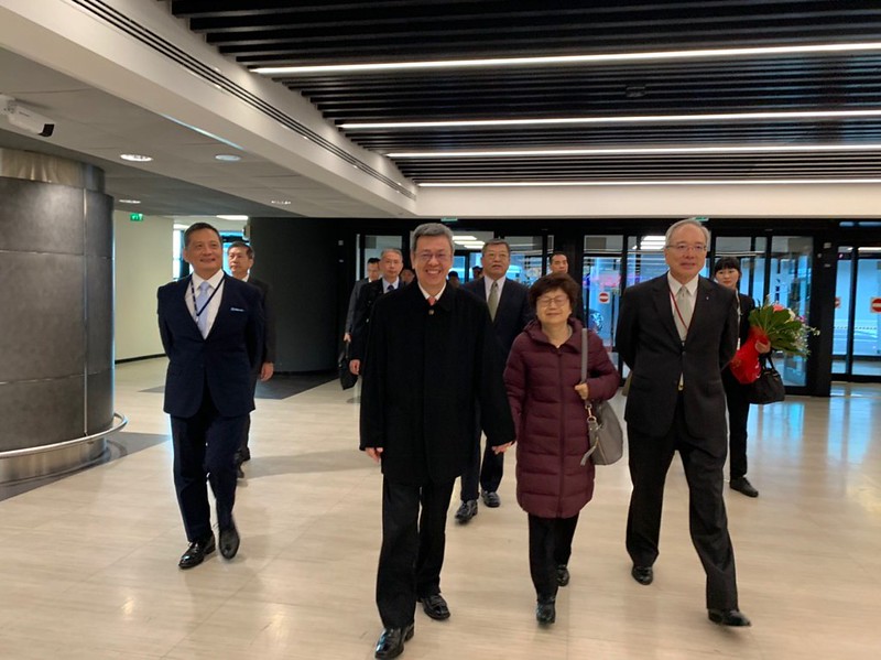 A delegation led by Vice President Chen Chien-jen arrived at Rome's Leonardo da Vinci International Airport on the morning of October 11 local time (the afternoon of October 11 Taipei time) to attend the canonization of Cardinal John Henry Newman and four other blesseds. Upon leaving the plane, the vice president and his wife were immediately met by a courtesy shuttle that whisked them to the airport's state protocol lounge, where they were greeted by ROC Ambassador to the Holy See Matthew S.M. Lee (李世明).