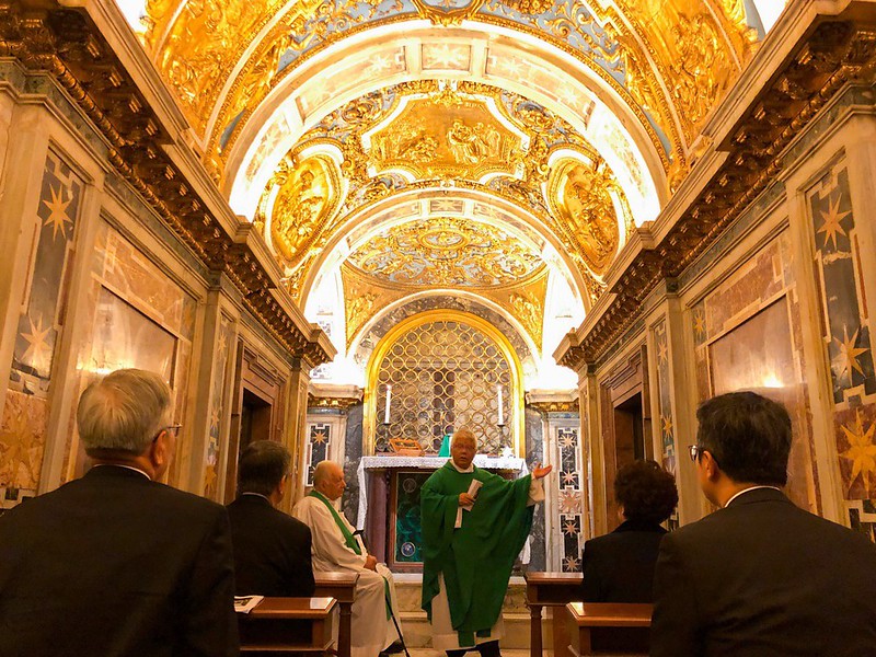 The Chapel of St. Peter, also called the Clementine Chapel, is located in the grotto's center, and its altar is located in the same place as an ancient altar in front of St. Peter's tomb, which is the most important point in St. Peter's Basilica. Thus, holding Mass in this chapel has profound spiritual meaning.