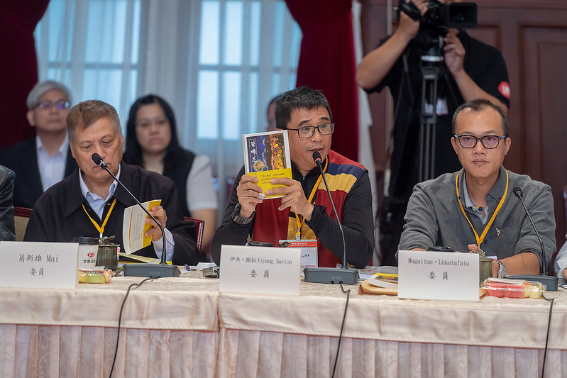 Therefore, before we begin today's proceedings, I want to introduce Masegeseg Z. Gadu (童春發), convener of the Subcommittee on Languages. He will deliver the entire report in Paiwanese. Meanwhile, providing simultaneous interpretation into Mandarin will be Ljavuras Kadrangian (拉夫琅斯.卡拉雲漾), who is himself an important cultural worker in the Paiwan community.