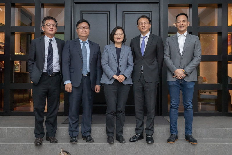 President Tsai Ing-wen met with Taiwan's delegates to the APEC Business Advisory Council (ABAC) Acer Chairman Jason Chen (陳俊聖), Taiwan Mobile President Jamie Lin (林之晨), and Quanta Computer CTO Ted Chang (張嘉淵), as well as Chairman Chen's ABAC deputy delegate to ABAC, PELL Biomedical Technology Limited founder Prof. Steve Chen-Lung Lin (林成龍), on the morning of November 4 at her official residence.