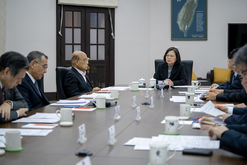 President Tsai Ing-wen convened a national security meeting of senior officials on the morning of January 9 to monitor the latest developments in the Middle East. She was briefed by the National Security Council (NSC), the National Security Bureau, the Ministry of Foreign Affairs (MOFA), the Ministry of National Defense, the Mainland Affairs Council, and the Ministry of Economic Affairs on the impacts of conditions in the Middle East on Taiwan.