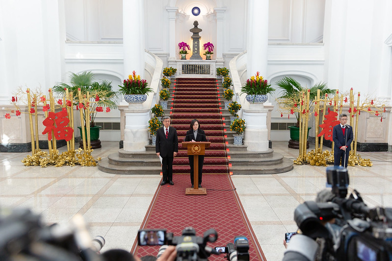 On the afternoon of January 30, President Tsai Ing-wen, accompanied by Vice President Chen Chien-jen, issued remarks in the Entrance Hall of the Presidential Office Building regarding possible impacts that the novel coronavirus outbreak in Wuhan, China might have on Taiwan's economy, as well as the response measures the government has drafted. After issuing remarks, President Tsai then took questions from the media.