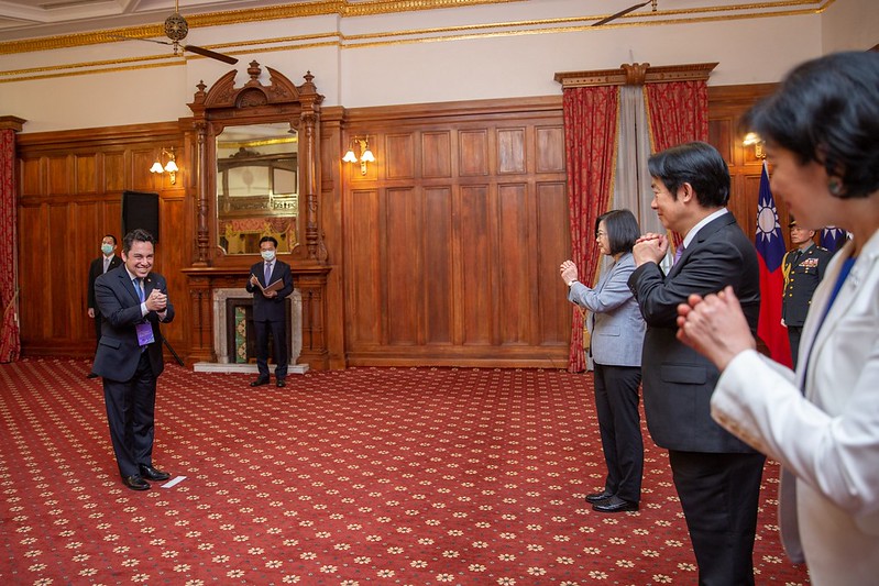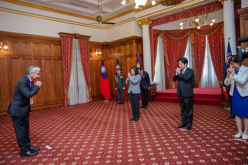 Foreign guests who attended the event to offer congratulations included 15 members of the foreign diplomatic corps stationed in Taiwan: Nicaraguan Ambassador William Manuel Tapia Aleman (Dean of the foreign diplomatic corps in Taiwan), St. Christopher and Nevis Ambassador Jasmine Elise Huggins, Paraguayan Ambassador Marcial Bobadilla Guillen, Palauan Ambassador Dilmei Louisa Olkeriil, Haitian Ambassador Rachel Coupaud, Belize Ambassador Diane C. Haylock, Tuvalu Ambassador Limasene Teatu, Saint Lucia Ambassador Edwin Laurent, Marshall Islands Ambassador Neijon R. Edwards, Guatemalan Ambassador Willy Alberto Gomez Tirado, Saint Vincent and the Grenadines Ambassador Andrea Clare Bowman, Nauruan Ambassador Jarden Kephas, Honduras Ambassador Eny Yamileth Bautista Guevara, Charge d'Affaires a.i. Monsignor Arnaldo Catalan of the Apostolic Nunciature, and Eswatini Charge d'Affaires Lindiwe Cynthia Trizah Kunene; guests from foreign organizations stationed in Taiwan: American Institute in Taiwan Taipei Office Director William Brent Christensen, Japan-Taiwan Exchange Association Taipei Office Chief Representative Hiroyasu Izumi, Head of the European Economic and Trade Office Filip Grzegorzewski, Singapore Trade Office in Taipei Trade Representative Yip Wei Kiat, Australian Office Taipei Representative Gary Richard Cowan, Korean Mission in Taipei Representative Kang Young-Hoon, French Office in Taipei Director Jean-Francois Casabonne-Masonnave, German Institute Taipei Director General Thomas Prinz, British Office Taipei Representative Catherine Elizabeth Nettleton, and Canadian Trade Office in Taipei Executive Director Jordan Reeves; representatives of international organizations: World Vegetable Center Director General Marco Wopereis, and Food and Fertilizer Technology Center for the Asian and Pacific Region Director Su-San Chang (張淑賢).