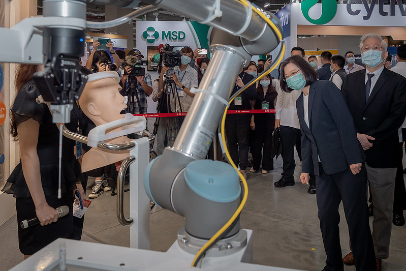 The president then awarded the Outstanding Company of the Year, Innovation of the Year, and Emerging Company of the Year awards, cut the ribbon for the opening ceremony, and then toured the exhibits alongside other guests. She also expressed best wishes for a successful event, and that Taiwan's biomedical industry will continue to prosper.