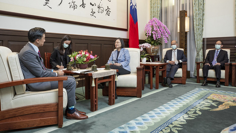 While meeting with American Chamber of Commerce in Taipei (AmCham Taipei) Chairman C.W. Chin on the morning of August 18, President Tsai Ing-wen stated that the Taiwan-US partnership continues to deepen with the signing of a bilateral memorandum of understanding (MOU) on health cooperation, while the Taiwan External Trade Development Council (TAITRA) has launched the Taiwan-U.S. Business Alliance. The president also expressed hope that a bilateral trade agreement (BTA) would allow Taiwan and the United States to capitalize on the complementarity of our industries, and bilateral economic and trade exchanges would be enhanced, creating more business opportunities and benefiting both sides.