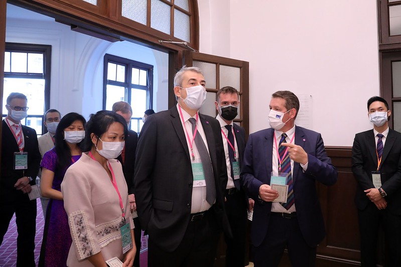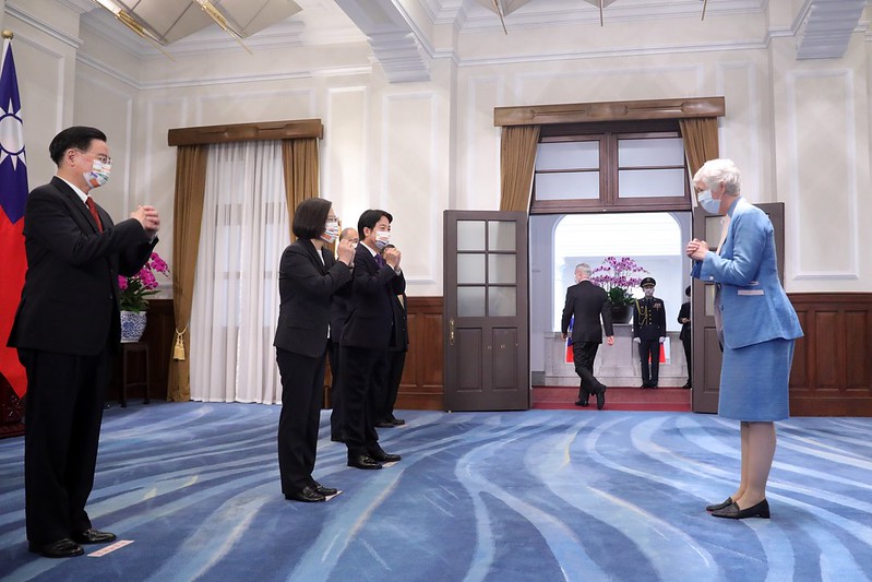 Foreign guests who attended the event to offer congratulations included 15 members of the foreign diplomatic corps stationed in Taiwan: St. Christopher and Nevis Ambassador Jasmine Elise Huggins (Dean of the foreign diplomatic corps in Taiwan), Paraguayan Ambassador Marcial Bobadilla Guillen, Palauan Ambassador Dilmei Louisa Olkeriil, Haitian Ambassador Rachel Coupaud, Belize Ambassador Diane C. Haylock, Tuvalu Ambassador Limasene Teatu and Mr. Teatu, Saint Lucia Ambassador Edwin Laurent, Marshall Islands Ambassador Neijon R. Edwards, Guatemalan Ambassador Willy Alberto Gomez Tirado and Mrs. Gomez, Saint Vincent and the Grenadines Ambassador Andrea Clare Bowman, Nauruan Ambassador Jarden Kephas, Honduran Ambassador Eny Yamileth Bautista Guevara, Charge d'Affaires Mirna Rivera of the Embassy of Nicaragua, Charge d'Affaires a.i. Monsignor Arnaldo Catalan of the Apostolic Nunciature, and Eswatini Charge d'Affaires Lindiwe Cynthia Trizah Kunene; guests from foreign organizations stationed in Taiwan: American Institute in Taiwan Taipei Office Director William Brent Christensen and Mrs. Christensen, Head of the European Economic and Trade Office Filip Grzegorzewski, Singapore Trade Office in Taipei Trade Representative Yip Wei Kiat, Japan-Taiwan Exchange Association Taipei Office Acting Chief Representative Yokochi Akira, Australian Office Taipei Representative Gary Richard Cowan and Mrs. Cowan, India-Taipei Association Director General Gourangalal Das and Mrs. Das, Korean Mission in Taipei Representative Young Hoon Kang and Mrs. Kang, Malaysian Friendship and Trade Centre in Taipei President Sharon Ho Swee Peng, New Zealand Commerce and Industry Office Director Moira Turley, French Office in Taipei Acting Director Guillaume Delvallée and his partner, German Institute Taipei Director General Thomas Prinz and Mrs. Prinz, British Office Taipei Representative Catherine Elizabeth Nettleton, Canadian Trade Office in Taipei Executive Director Jordan Reeves and Mrs. Reeves, and Somaliland Representative Office in Taiwan Representative Mohamed Omar Hagi Mohamoud and Mrs. Mohamoud; and representatives of international organizations: World Vegetable Center Director General Marco Wopereis and Mrs. Wopereis, and Food and Fertilizer Technology Center for the Asian and Pacific Region Director Su-San Chang (張淑賢) and her husband.