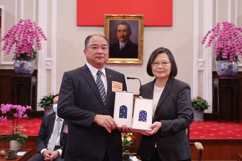 The award winners were accompanied by Chairman Lai Cheng-I (賴正鎰) of the General Chamber of Commerce of the Republic of China to meet President Tsai at the Presidential Office.