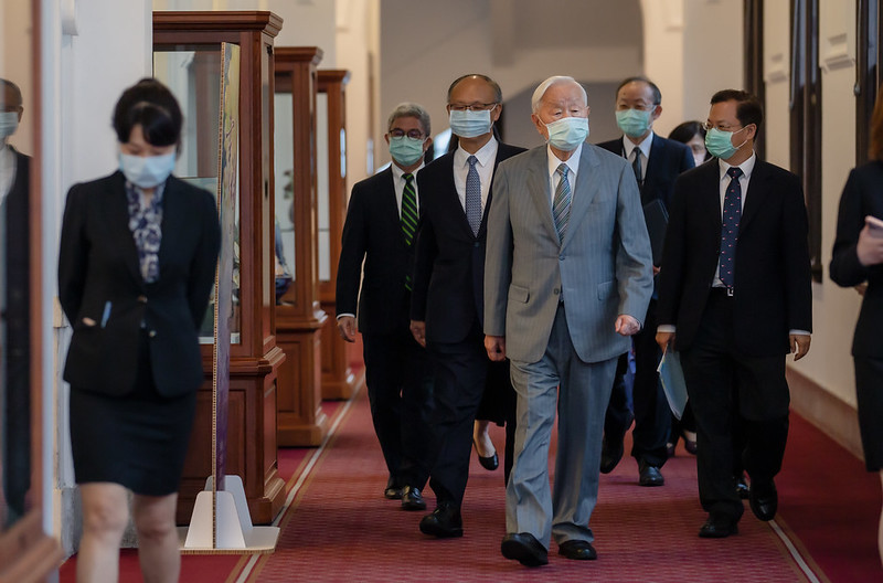 The Presidential Office held a press conference on the afternoon of November 21 following the 2020 APEC and Economic Leaders' Meeting (AELM). Accompanied by Minister without Portfolio John C. C. Deng (鄧振中), National Development Council Minister Kung Ming-hsin (龔明鑫), National Security Council Deputy Secretary-General Hsu Szu-chien (徐斯儉), and Senior Official for APEC and Ministry of Foreign Affairs' Department of International Organization Director-General Bob L.J. Chen (陳龍錦), Leader's Representative Morris Chang shared an overview of the APEC meetings, and the results achieved during the Ministerial Meetings and the AELM with the Taiwanese people, and then took questions from reporters.