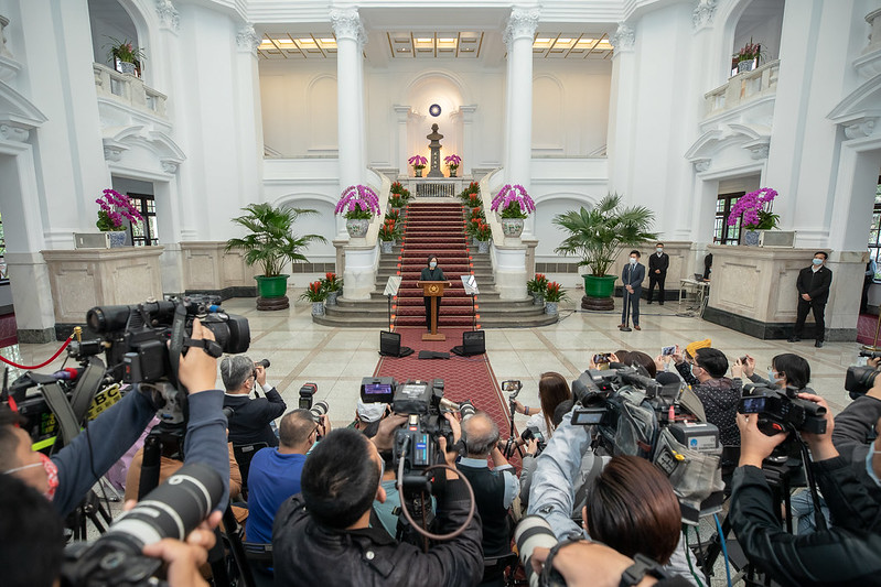 On the morning of February 9, President Tsai Ing-wen delivered remarks in the Entrance Hall of the Presidential Office Building on Taiwan's response to the global pandemic and other regional and international issues covered in a high-level national security meeting convened earlier that morning.