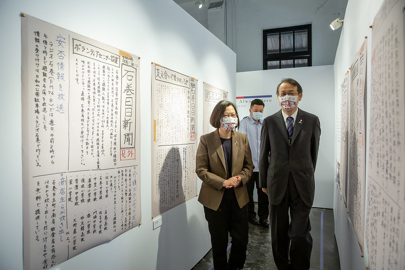 President Tsai noted that this year marks the tenth anniversary of the Great East Japan Earthquake, and thanked the Japan-Taiwan Exchange Association for holding the "Always Here" series of events, including this special exhibition at the Huashan 1914 Creative Park in Taipei, which she visited today before its scheduled conclusion this weekend. She said she hopes the exhibition will inspire moving memories of mutual support between the peoples of Taiwan and Japan.